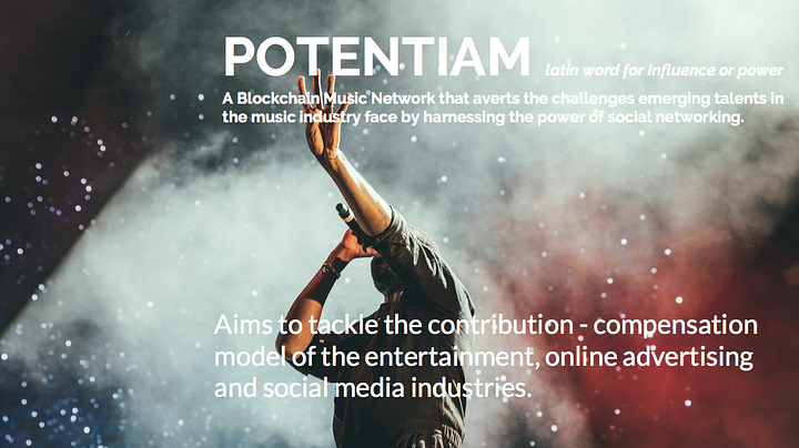 Guten Tag Leser. Ich werde ein neues Projekt im Musikbereich diskutieren. Betrachtet man den Markt der Musikindustrie allgemein, so umfasst er eine Vielzahl von Firmen, Firmen und Independents. Im Laufe der Jahre hat sich der Markt gut an die vielen Veränderungen angepasst. Das Hauptproblem in der Musikindustrie sind Gewinne aus Unternehmen, die an Aufgaben wie Veröffentlichung, Vertrieb und Produktion von Musik auf der ganzen Welt teilnehmen. Aus seiner Analytik profitiert die Musikindustrie Jahr für Jahr von hohen Einnahmen. Dies zeigt, dass es ein Ort ist, in den es sich zu investieren lohnt. Das Projekt, über das ich diskutiere, arbeitet Blockchain in Musik, die nicht die erste ihrer Art ist, aber es auf eine interessantere Weise macht. In der Musikindustrie wurden bestimmte Probleme festgestellt, die zu einem Rückgang des Marktes für die Musikindustrie führen könnten. Die Musikindustrie gibt nicht genügend Unterstützung für aufstrebende Talente, was die Branche tendenziell langsam schmälert. Aber hier ist ein Projekt, dessen Ziel es ist, die Blockchain-Technologie im Musiknetzwerk zu verwenden, um diese Probleme zu lösen. Das Projekt ist POTENTIAM.